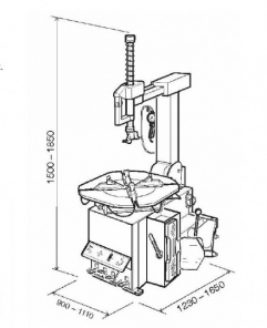 • Automatische Reifenmontagemaschine mit pneumatisch Schwenkbarer Montagesäule.